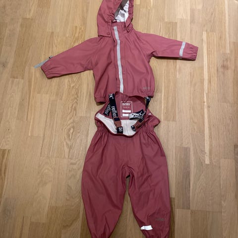 Reflex regntøysett for barn i størrelse 110 for jente. Sett i polyester som består av regnjakke og regnbukse. Jakken er rosa med hette, glidelås foran og refleksdetaljer. Regnbuksen er selebukse med justerbare seler, strikk nederst i beina og refleksdetaljer. Materiale i polyester gjør settet egnet som yttertøy i vått vær. Noen små ubetydelige bruksmerker (de bilde).
