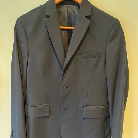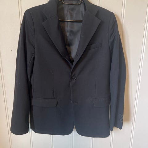 Følger med penbukse, slips og skjorte.
