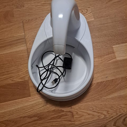 Egnet som drikkefontene til mindre hunder eller katter som foretrekker rennende vann. Materiale i hard plast, i lys grå melert farge.