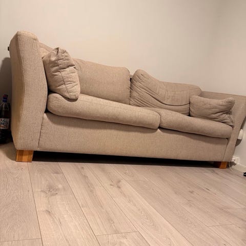 Selges da vi vil heller ha stoler. Det er hel og fin, veldig god å sitte i. Den trenger en rens, selges som den er. Må hentes raskt etter kjøp.