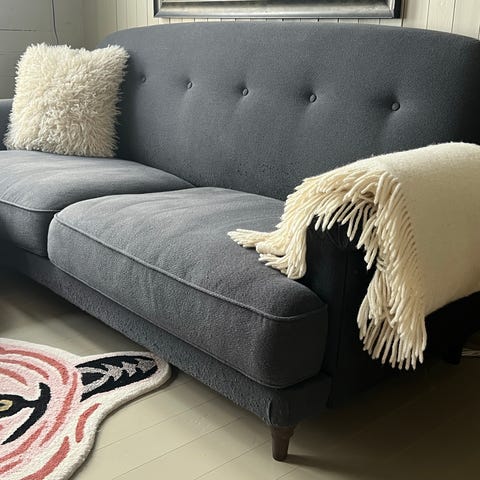 Sofaen kommer fra et røykfritt hjem. Vi har en liten hund, som er allergi vennlig. Sofaen er renset med våtstøvsuger og alle pute trekk er vasket i vaskemaskinen.