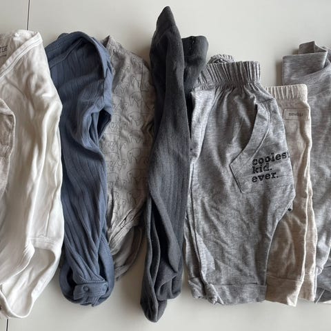 Pent brukte babyklær i god kvalitet for gutt i størrelse 62. Pakken inneholder ulike plagg i flere farger, blant annet bodyer, bukser, gensere og yttertøy. Klærne er egnet til hverdagsbruk for baby i størrelse 62. Flerfargede plagg gir variasjon i garderoben og kan kombineres på ulike måter etter behov og sesong.