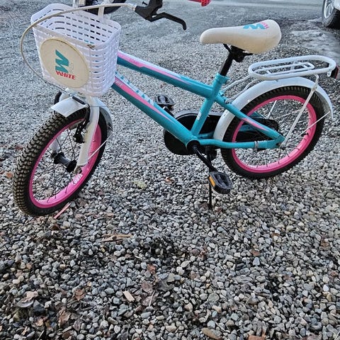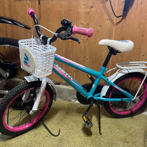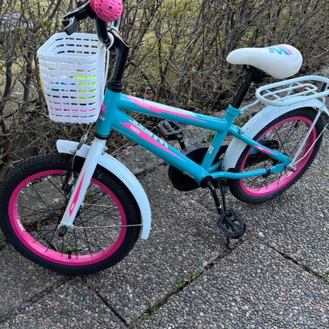 Godt brukt men i god stand. Litt overflaterust. Brensene virker foran og bak. Helt sete. Passer 4 til 6 år
