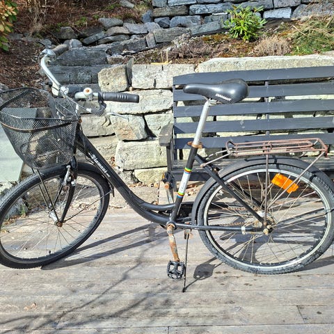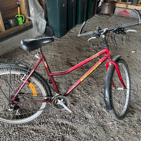 Er punktert på bakdekket og girene må justeres, ellers så er det mye sykkel igjen. :-)