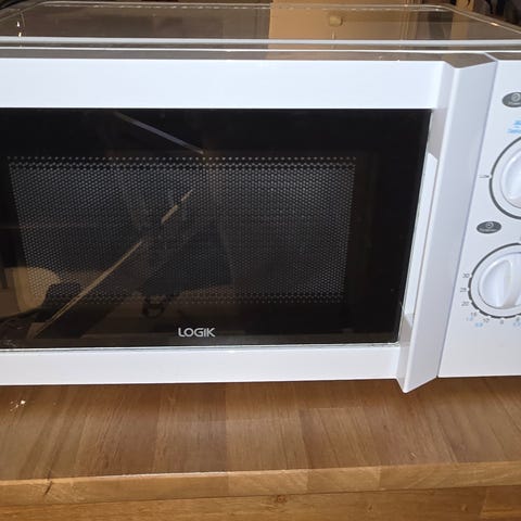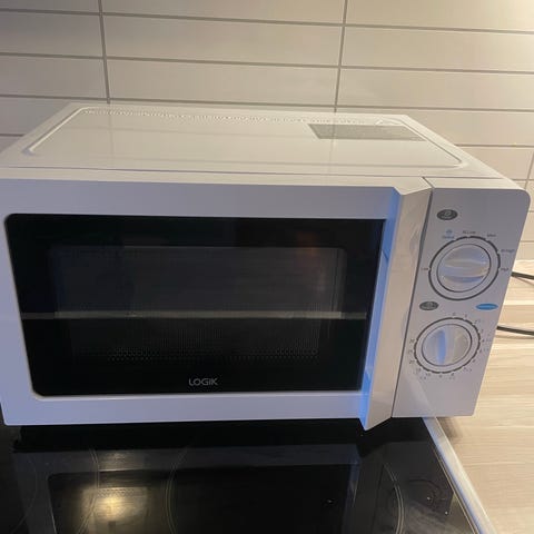 Logik mikrobølgeovn i hvit utførelse. Modellen har mekanisk betjening med dreiehjul for effektinnstilling og tidsur. Innvendig roterende glassplate. Egnet til enkel oppvarming og tining av mat.