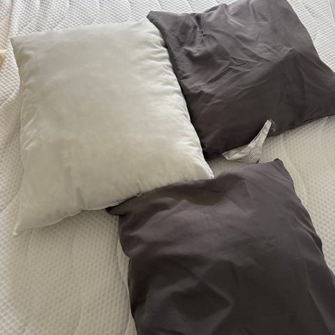 Høie dyne og puter i hvit tekstil. Pent brukt på en hytte. Dynen er 140x220cm. 250kr for alt