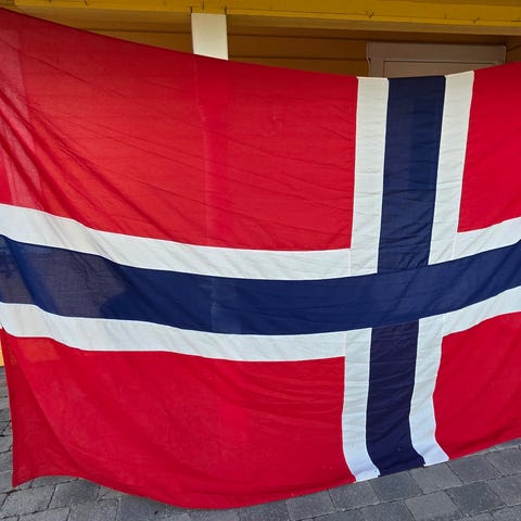 Flagg fra Kristiansand flaggfabrikk (flaggfabrikken) 350 norsk flagg. Rødt flagg med blått og hvitt kors, beregnet for flaggstang. Leveres med kantforsterkning og festeanordning i siden for oppheng på line. Egnet til bruk på flaggstang ved merkedager og andre anledninger der nasjonalflagget ønskes heist. Flagget er 250x350 cm og er beregnet for en flaggstang på 9-12 meter