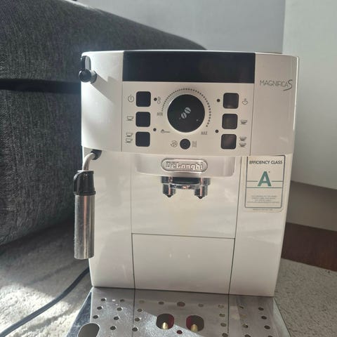 De'Longhi Magnifica Evo ECAM290.22.B espressomaskin i svart. Helautomatisk kaffemaskin med innebygd kvern, display og betjeningsknapper på toppen. Maskinen har justerbar kaffetut for én eller to kopper om gangen, avtakbart dryppbrett og vanntank foran. På siden er det damprør for skumming av melk til blant annet cappuccino og latte. Egnet for brygging av espresso og andre kaffedrikker basert på hele bønner.