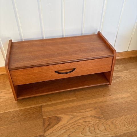 Liten og nett hylle med skuff selges. Den har vært brukt som entremøbel i ca 50 år og er fortsatt hel og pen.