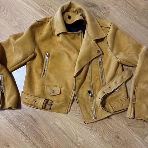 Zara semsket skinnjakke gul dame XS