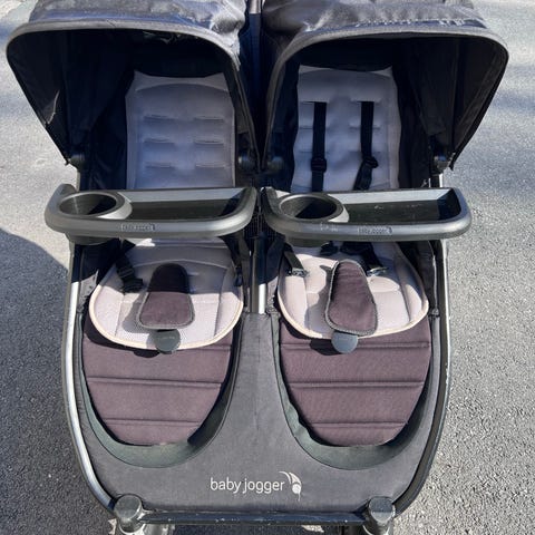 Selger vår fantastiske tvillingvogn, Baby jogger city mini double.. Utrolig lett og god å trille, selv med litt større barn sittende i. Barna har også sovet godt i denne. Hel og i orden, med mye bruk igjen. Noen flekker (se bilder), mulig de går helt bort i vask. Kanten på kurven under har revnet litt (se bilde), kan sikkert erstattes. Vi har brukt kurven allikevel. Vi har vært så glad i denne vogna, men nå er den klar for 2 nye små.