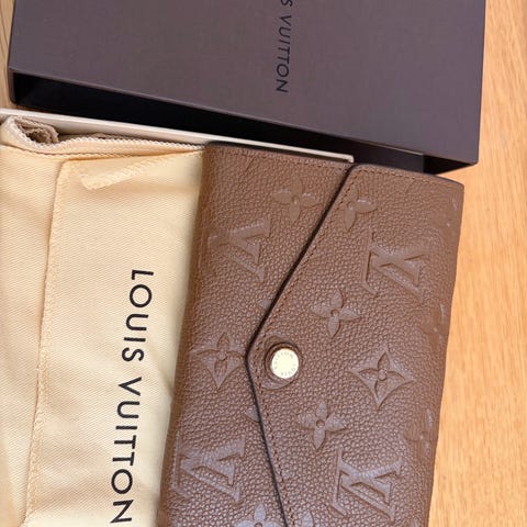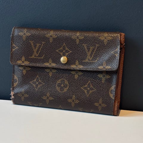Louis Vuitton lommebok i lær for dame. Lommeboken har klassisk monogrammønster i brun og beige på utsiden og brun innside. Den lukkes med trykknapp og har flere kortlommer, seddelrom og eget rom med glidelås som kan brukes til mynter eller småting. Passer som kompakt hverdagslommebok som får plass i de fleste vesker.
