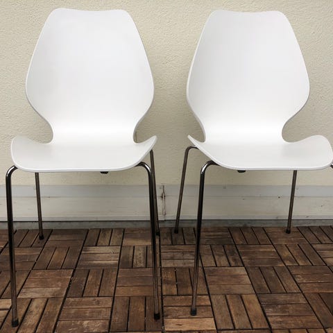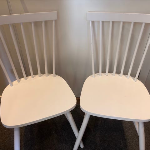 Seks spisestoler fra Papatya selges, modell X-Treme S WOX. Setene er hvit høyglans plast med ben i lakkert heltre og matt sorte metallkryss. Stolene er veldig pent brukt og fremstår identiske og uskadete, se bildene.