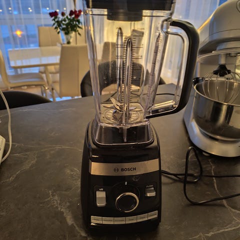 Bosch kjøkkenmaskin med bolle i stål og blenderkanne