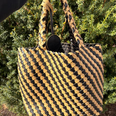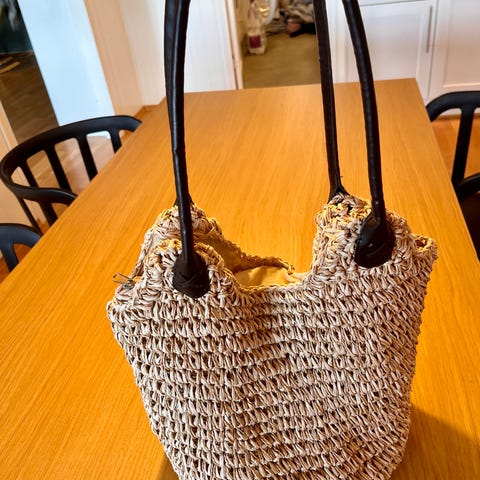 MUUN mini George stråveske med innertøy i sort, hank og skulder hank