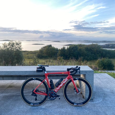 It's a stunning bike, especially in the sunlight - the color really pops in photos, so bonus points if you like snapping pics for Strava or Instagram! It's an excellent carbon road bike, light and perfect for climbing (should be around 9.5 kg with pedals).