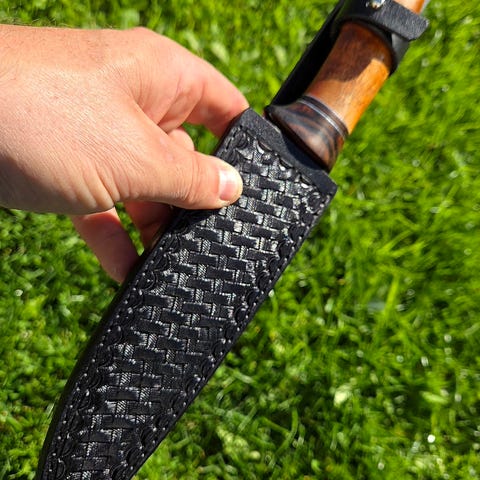 Lengde på blad er 16,5 cm, total lengde på kniven er 28cm.