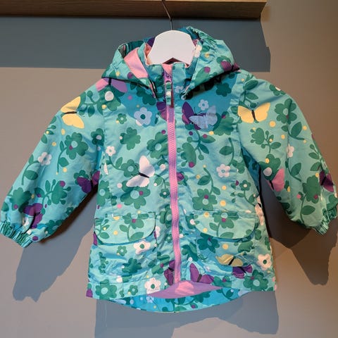 Vanntett vårjakke (vannsøyle 10 000mm) i størrelse 92 (1.5 - 2 år). Pent brukt og nyvasket. Vi har også den samme jakken i rosa.