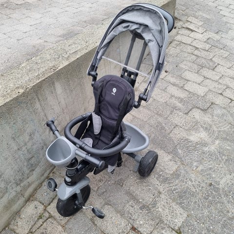 Kiwicool trehjulssykkel med avtagbar styrestang, gummihjul og parkbrems. Brukt til 1 barn. Kjøpt på Ringo, nypris 1300 kr.