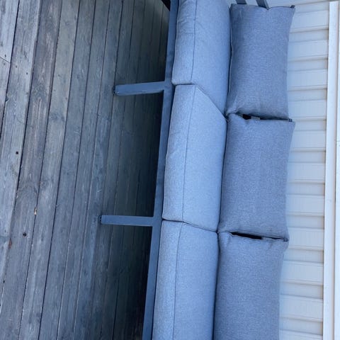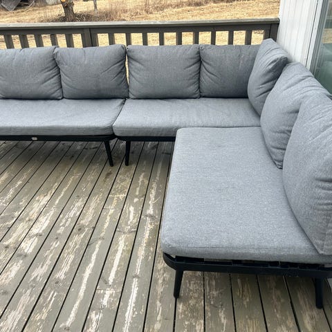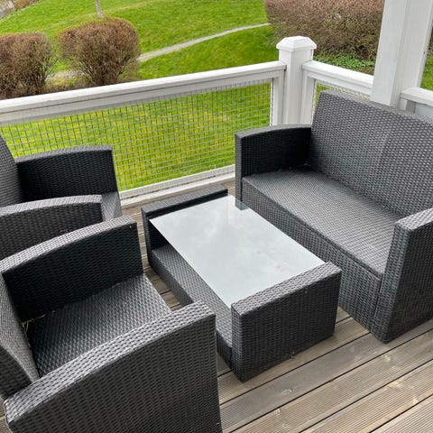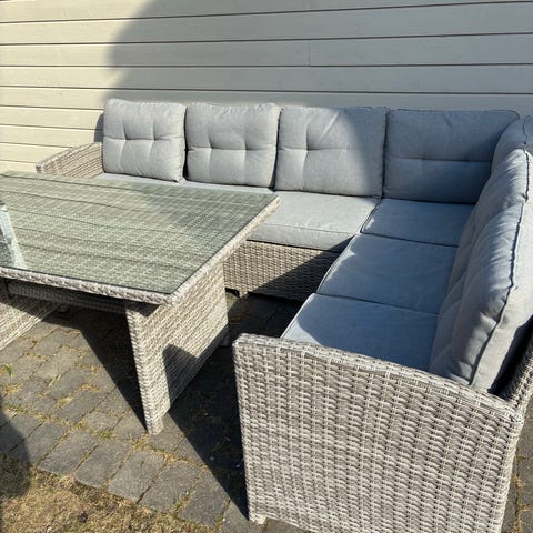 Viborg sofagruppe som består av bord, 2 stoler og sofa med puter. Det er pent brukt og har ingen skrammer. Putene er impregnerte og alltid oppbevart tørt. Trekk følger med, men det er litt slitt.