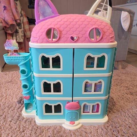 Lekehus i fargerik plast. Huset kan åpnes og har flere etasjer og rom på innsiden, med ulike plattformer og detaljer. Det følger med små figurer som kan brukes i huset. Egnet som lekesett for barn som liker rollelek og fantasilek med dukker og figurer. Selges med 1 balkong, noe møbler, og to figurer.