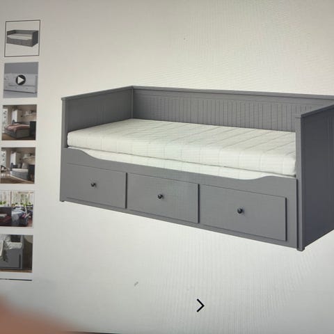 Selger en brukt Brimnes seng med skuffer uten madrasser. Sengen kan brukes som enkel eller dobbelseng. Det er noen bruksmerker noen steder men mest bak sengen. Totale lengde på sengen er 205 og bredde 87cm, men totale mål med dobbelseng er 160x200. Denne må hentes