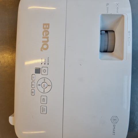 Basert på bildets utseende og kontrollpanelet, ser dette ut til å være en BenQ MP720p digital projektor. Denne modellen er en DLP-projektor som støtter sRGB og har et kontrollpanel med knapper for "Power", "Auto", "Menu", "Source", og piltaster.