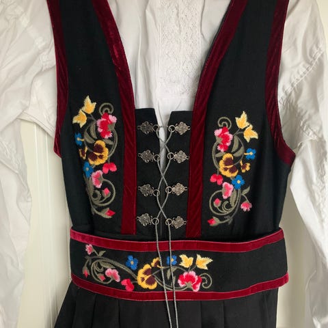 Eldre bunad i ullblanding, ikke tykk ull.