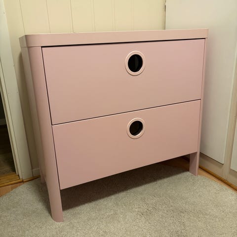 Rosa kommode fra IKEA i veldig god stand. Kan ikke se noen mangler. Veldig fin og praktisk på barnerom
