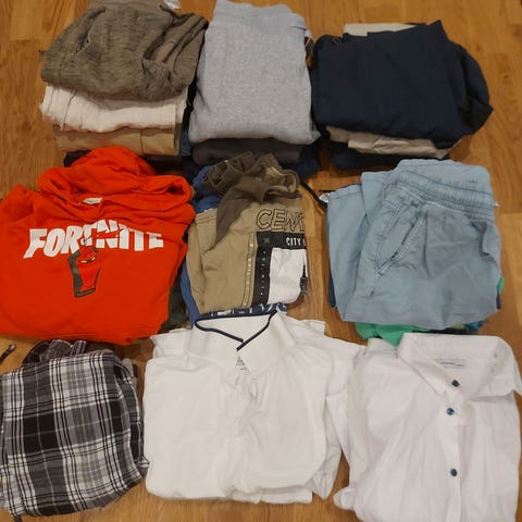 Klespakke selges billig samlet for 80 kr, eller 15 kr per plagg.