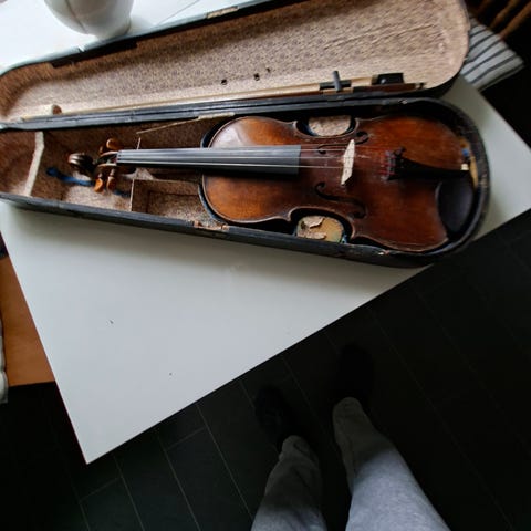 Chrotta og Fiolin str voksen selges samlet inkl buer i dobbelt fiolinkasse. Instrumentene har muntlig taks fra fiolinbygger Ferdinand Storn, som kan kontaktes om behov.