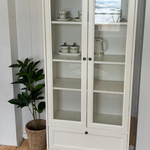 Flott og klassisk heltre vitrineskap. Stående. Det er hvitt med litt trehvite kanter for et mer levende uttrykk. Tror det ble kjøpt på Skeidar. Selges for mine foreldre som bor sentralt i Brumunddal.