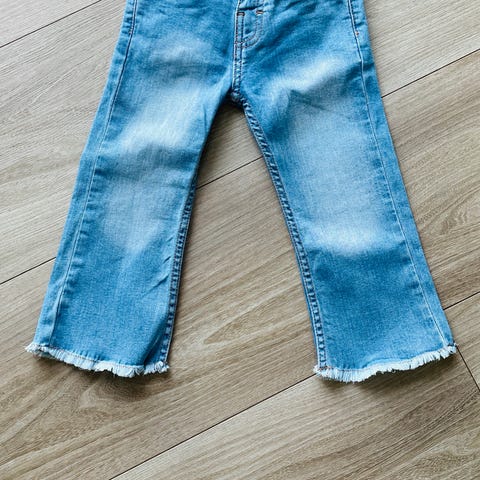 Levi's 726 Flare olabukse for jente i størrelse 128. Buksen er laget i blå denim med lett utsvingte ben. Klassisk 5-lommersmodell med glidelås og knapp i livet.