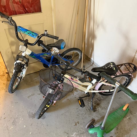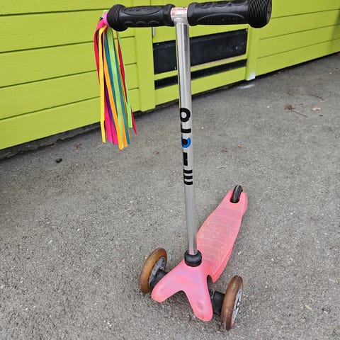 Balansesykkel gis bort. Setet kan heves og senkes. Lettvektsykkel.