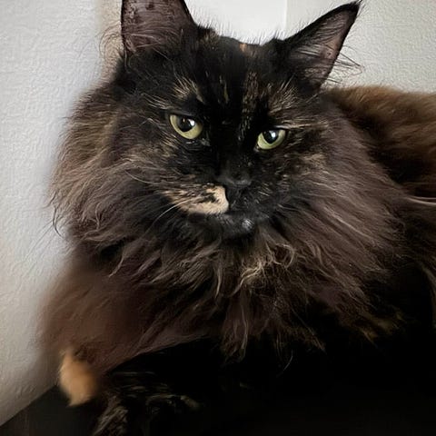 Hun sitter gjerne på skulderen, ligger i fanget og kryper inntil deg for å få kos ❤️