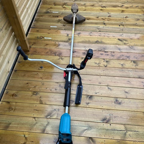 Bensidrevet gresstrimmer blå