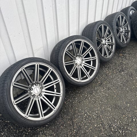 Dette er staggered oppsett (forskjellige bredder foran og bak), som gir skikkelig bra utseende på bilen.