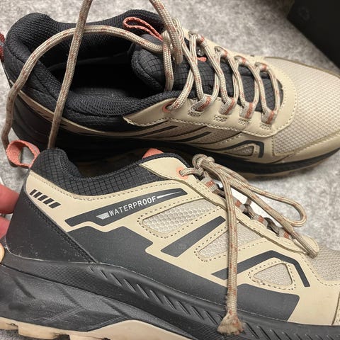 Salewa Wildfire Pro tursko i størrelse 40,5. Lav tursko egnet til fottur, med overdel i slitesterkt materiale og forsterket tåparti. Skoen har snøring foran for justerbar passform og kraftig yttersåle med godt grep til bruk på sti og variert terreng. Fargekombinasjon grå med gule detaljer.