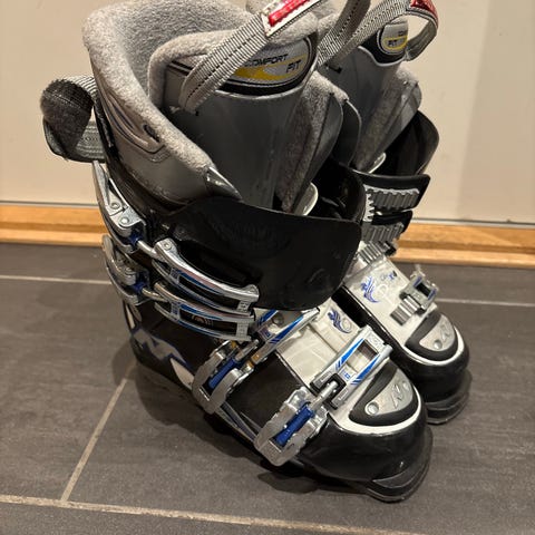 Nordica Super N skistøvler i svart med grå detaljer. Modellen har fire justerbare spenner i metall foran for god tilpasning rundt fot og legg. Innerstøvelen er polstret og gir støtte og komfort. Skistøvlene har bakre stropp for enklere håndtering og bæring. Passer til bruk i alpinbakke med vanlige alpinbindinger.