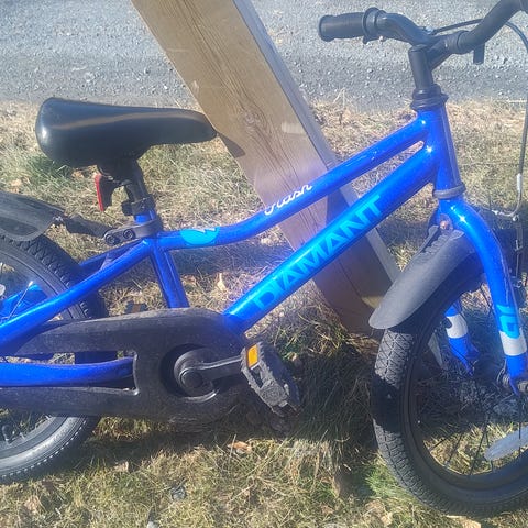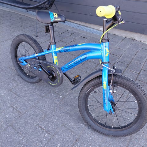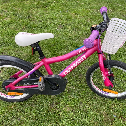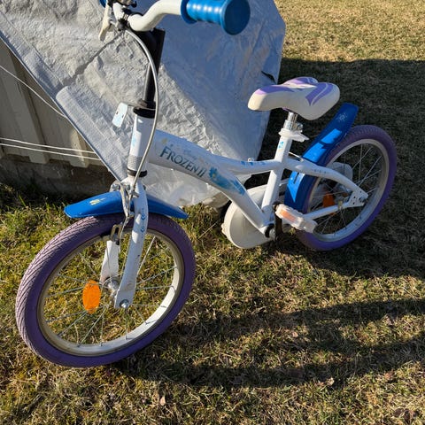 Mangler sykkelstøtte, men støttehjul kan følge med om ønskelig.