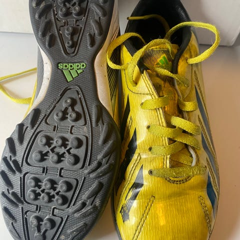 Selger et par grønne fotballsko fra Adidas med knyting. Størrelse 32. Synlig brukt men mye bruk igjen og god stiving i skoa. Lite slitasje på sålen.