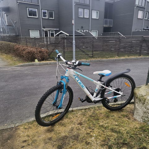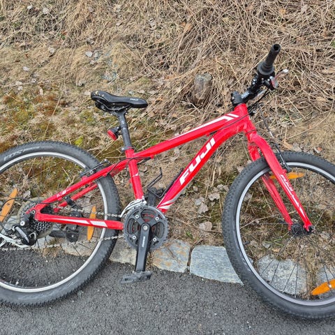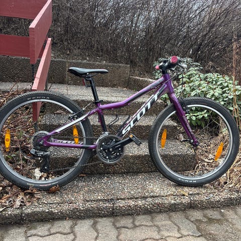 Scott barnesykkel med 24" hjul selges. Den er godt brukt, men mye bruk igjen. Litt rust på skruer/vaier som vist på bildet. Gir og bremser må muligens justeres etter vinteren.