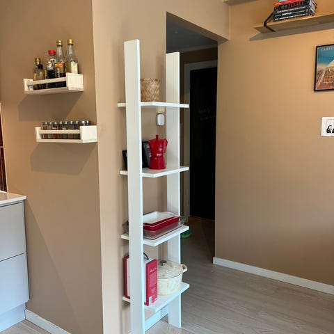 Flere hyller med god plass til bøker og dekor
