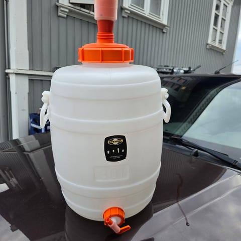 Speidel gjæringskar i plast med oransje lokk og tappkran. Karet har bærehåndtak på sidene og gjærlås i lokket. Egnet som gjæringskar til ølbrygging, vin eller annen drikke. Plastmaterialet er glatt innvendig for enkel rengjøring. Lokket har pakning for bedre tetting under gjæring.