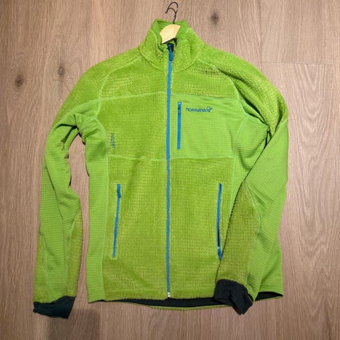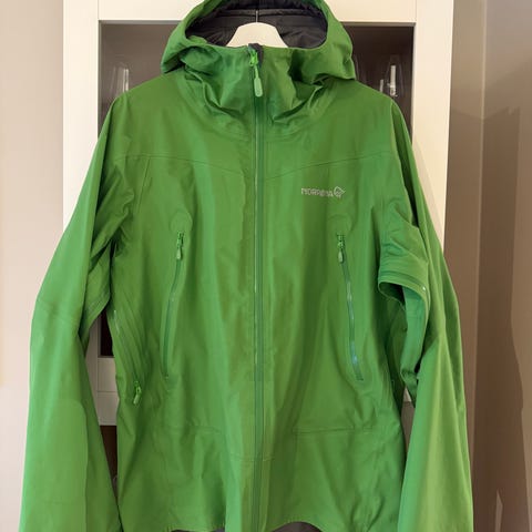 Norrøna jakke for herre i størrelse L. Jakken er grå og laget i polyester. Den har fast hette, justerbare mansjetter med borrelås og flere glidelåslommer på bryst og i siden. Innsiden har fôr i kontrastfarge og snølås nederst. Egnet som ytterjakke til friluftsliv og hverdagsbruk i skiftende værforhold.