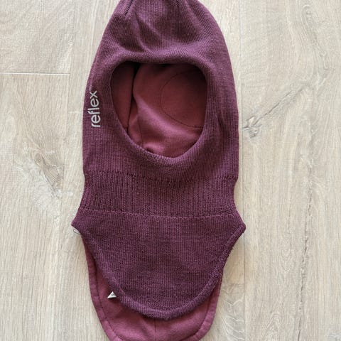 Søt balaclava i 100 % merinoull. Kun prøvd. Refleksstoff på ører.