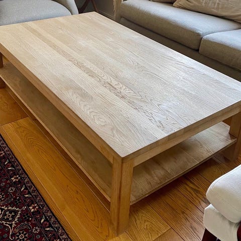 Flott eikebord (finert plate) fra Aase dreieri - muligens designet av Fredrik Kayser. Har noen bruksmerker, og en liten skade i et hjørne( se bilde). Trenger en overflatebehandling (puss og lakk).