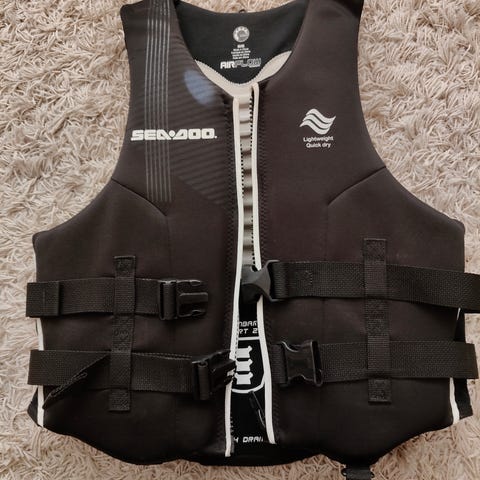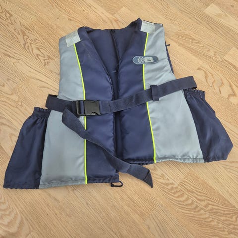 Tre stk. Regatta Norwegian Lifeguard redningsvest i svart farge. Vesten er merket for personvekt 70–90 kg. Den har justerbar midjereim med spenne foran for tilpasning og sikker lukking. Sertifisert i henhold til EN ISO 12402-5. Egnet som flyteutstyr ved fritidsbruk på båt og andre aktiviteter på vann for personer innen angitt vektklasse. Selges for 200kr stk. eller samlet 600kr.