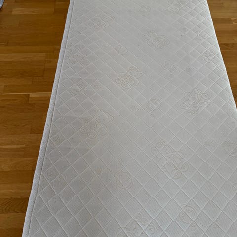 Jysk Dreamzone Plus T50 overmadrass. Madrass har skrift "Ligg godt" på trekket.