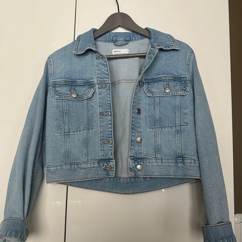 Weekday dongerijakke i blå denim for dame i størrelse S. Jakken har klassisk jeansjakke-design med krage, knappelukking foran og brystlommer med klaff. Produsert i denim-materiale som gir et robust uttrykk. Passer som ytterplagg i overgangssesonger eller som lag-på-lag-plagg over topp eller genser.